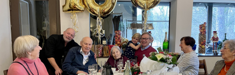 Noch eine herzliche Gratulation: Lieselotte Werker, von allen liebevoll Lotte genannt, ist im Club der Müngersdorfer 100jährigen dabei. Ihr Mann Rolf, 98, sowie die beiden Söhne Lutz (li) und Henning (re) sowie sechs Enkel und dreieinhalb Urenkel und die beiden Schwiegertöchter sind stolz und glücklich. Wer darf so etwas schon erleben? Auch der Bürgerverein Müngersdorf wünscht weiterhin alles Gute. hf > hier mehr