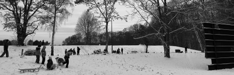 Ski und Rodeln gut in Müngersdorf. Das kommt nicht jedes Jahr vor. Aber Anfang dieses Jahres hatten die Kinder ihren Spaß im Grüngürtel. Paßt doch schön zum Neujahrsgruß 2026 des Vorstands des Bürgervereins Köln-Müngersdorf. Denn damit alle im Viertel - besonders die Kinder und Jugendlichen - richtig froh sein können, hat der Vereinsvorstand > seinen Gruß mit einem Spendenaufruf verbunden. Foto: Hanno Frings