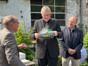 Im Namen des Bürgervereins Müngersdorf überreichte Bausinger dem Geistlichen zum Abschied ein Fensterglas des Kölner Doms aus der Dombauhütte sowie ein Erinnerungsbuch mit Briefen, Texten und Fotos der Abschiedsfeier. In einem bereitgestellten Briefkasten aus Holz konnten die anwesenden Gäste ihre Briefe mit guten Wünschen, Dank oder gemeinsamen Erinnerungen mitgeben.