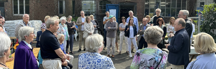 Im Rahmen einer vom Bürgerverein organisierten Feier trafen sich zahlreiche BVM-Mitglieder an einem sonnigen Nachmittag Mitte Juni im Petershof, um bei Kaffee und Kuchen, Abschied von Pfarrer Dr. Fey zu nehmen und sich über gemeinsam Erlebtes auszutauschen.