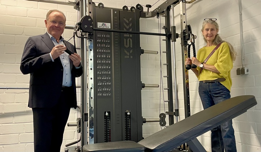 Die Sache ist endlich gestemmt: Anton Bausinger und Antje Frings vom Bürgerverein Müngersdorf sind seit mehr als drei Jahren an dem Projekt Jugendkeller dran. Dieses Sportgerät zum Beispiel haben alle Mitglieder des BVM mit ihren Beiträgen und Spenden finanziert.